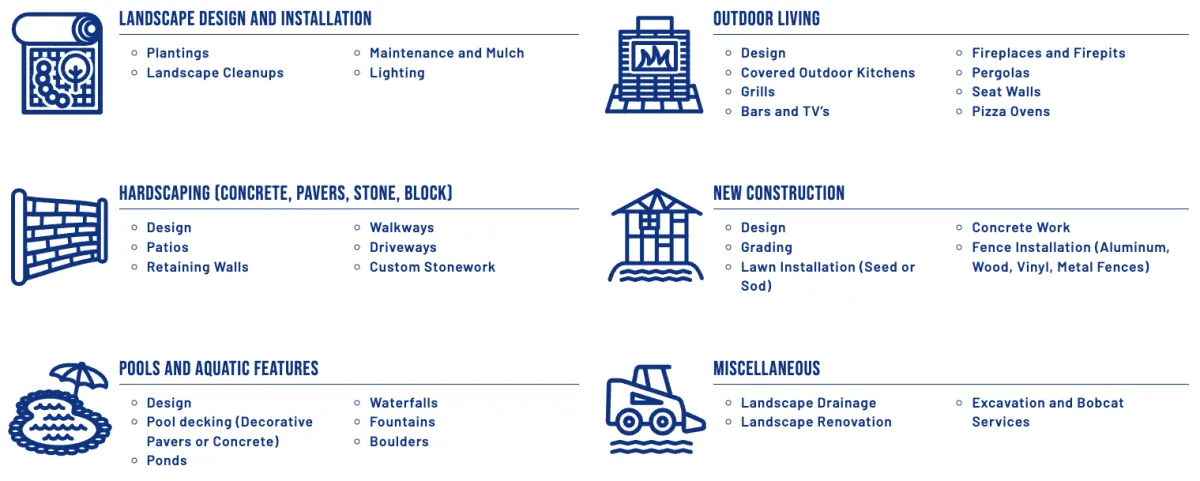 MD Property Maintenance & Landscaping will custom design a complete outdoor living space or landscape package for your home or business. Our specialties include, but are not limited to: